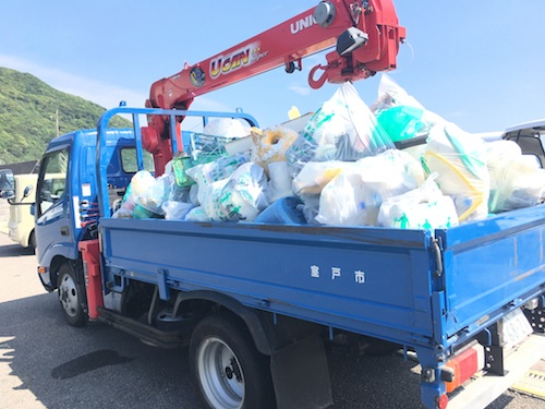 拾ったゴミは、トラック1台分になりました。興味深かったのは、高知県西部にある四万十川のカニ漁の許可証(数年前のもの)が流れて来てたこと。川にポチャンして海に流れたものが、黒潮に乗ってやってきたんですね〜。さて、次回はどんなものが発見できるか。楽しみになってきました。