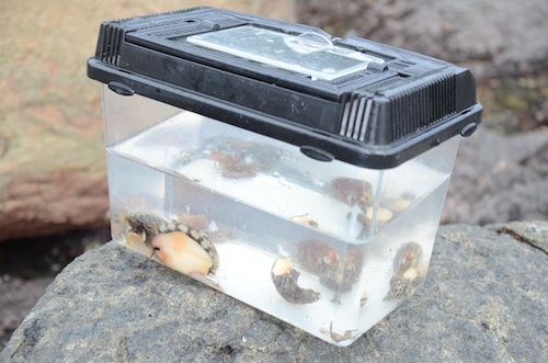 その後、実際に現場に出て、磯の生き物を観察したり、網で捕獲して観ていきました。どんなところにどんな生き物がいるのか、網で捕えるコツやお客様への声掛けのポイントなど、実際に使えそうな内容ばかり。参加者も各々メモを取ったり、写真を撮るなど積極的に受講されていました。