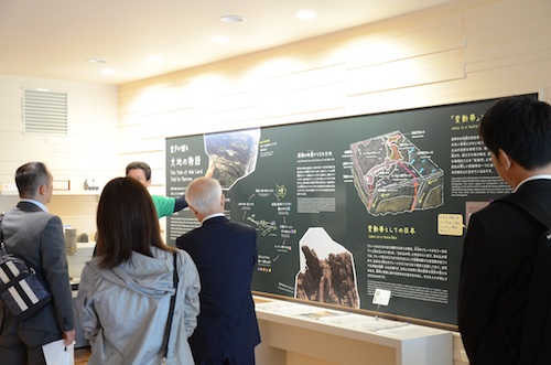 意見交換会を終え、ジオパークセンター内を中村専門員が案内。