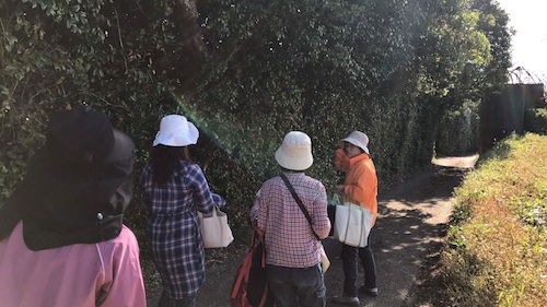 その後、西山台地の散策へ。強風から家などを守る防風林の話や台地の上から海側の景色を見たりしました。