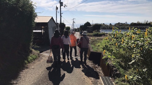 150mの高さを越える西山台地で、圧倒的に広い空間の空と海を眺める、そしてサツマイモをほる。しかも、そこは大昔は海の底だった。時間・空間の大きなスケールを感じながら、先代の方々の苦労にも思いをはせる。参加者からは「とっても良いツアーだった」「また来たい!」という感想をいただきました。