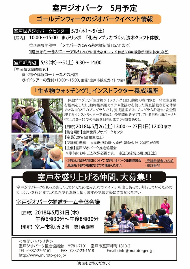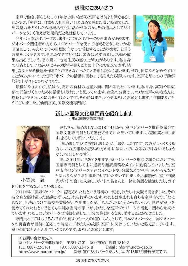 「室戸ジオパークだよりvol.42」が出来ました。室戸市の広報紙「広報むろと」5月号に折込みしています。本ブログでは、カラー版を掲載いたします。