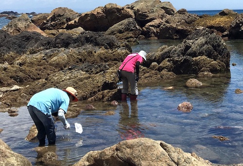 磯で石をひっくり返すなどして、磯場にいる生き物を観察するプログラム