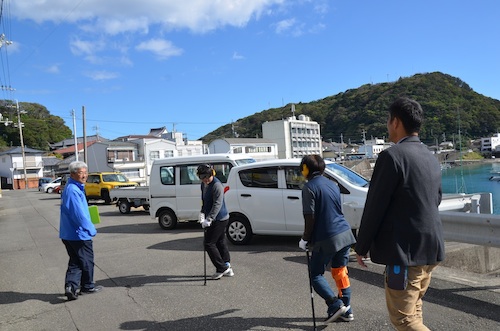 室戸ジオパークの活動を推進していく5つのチームの中の「まもる」チームで、ツアー中に起きた地震時の避難について体験・検証してきました。