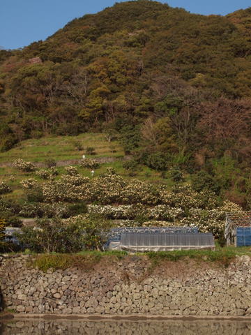 この写真は、室戸半島の西海岸です。斜面に白い袋がた〜くさん。これ、ビワです。5月の連休には市場に出荷予定です。キラメッセや室戸とんがり市などでも買える、室戸の特産品です。