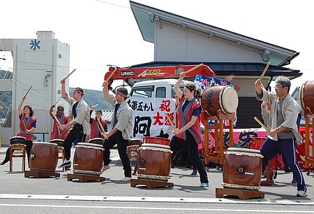 勇魚太鼓の演奏がありました。勇魚というのは、鯨のこと。雄大な鯨のようなパワフルな演奏、みんなカッコ良かったです!(含ジオパーク推進課の課長)