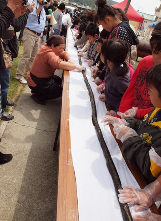 そして、お昼頃には10メートルの土佐巻作りに挑戦!実はAはこれは見られなかったんですが、後で写真で見ると、スっゴイですね長いですねぇ。