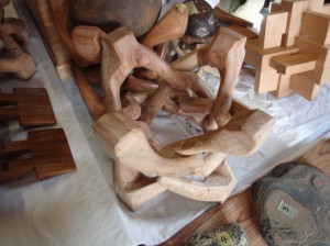 中に入ると、長山さんが木から作った工芸品が、スペースいっぱいに展示されています。