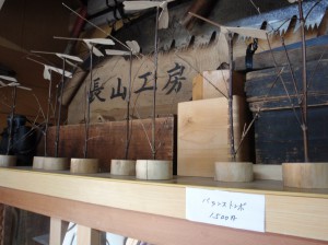 長山行守さんが、ご自身で作られた工芸品を展示してある工房です。一部販売もしています。