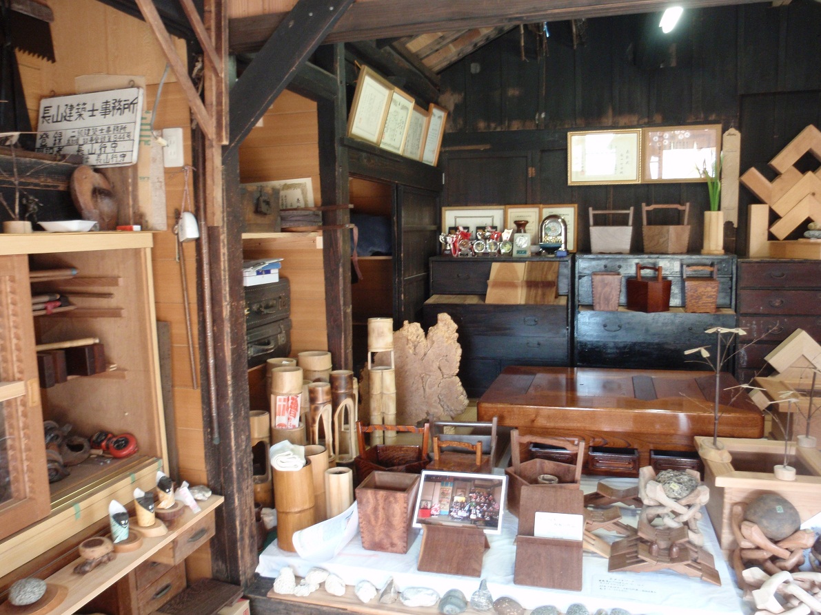 長山行守さんが、ご自身で作られた工芸品を展示してある工房です。一部販売もしています。