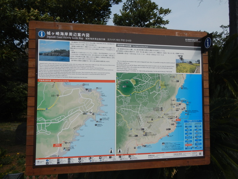 城ヶ崎海岸の駐車場の地図。散策路がしっかり書かれていて、地質学的なスポットもどこにあるかが分かります。 でも、いくつかの散策路に関する情報が少なく。ルートを選ぶ判断材料がありません。サイト別の散策路マップ&見れるものの解説が書かれたパンフレットがあれば良かったのですが、ここでは入口の土産もの売り場では手に入れられませんでした。ただ、売り場のスタッフの方が詳しくて、解説していただいたので、巡ることができました。