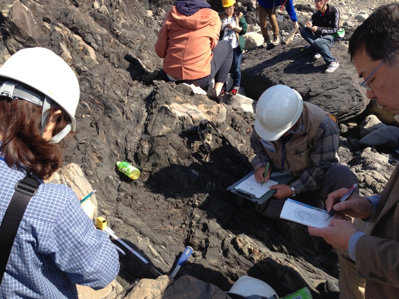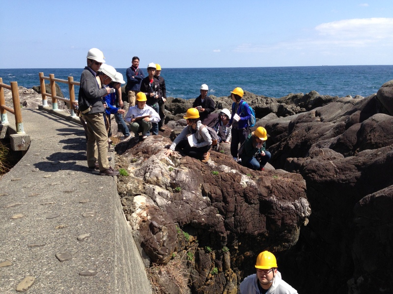 僕も、久しぶりに大学生向けに話をしましたよ。国士舘大学での講義の資料を引っ張りだしながら、付加体やプレートテクトニクスの話、ジオパークの話、そして室戸ジオパークの岩石や地形について、話をしました。そして、昨日は一日中巡検でした。
