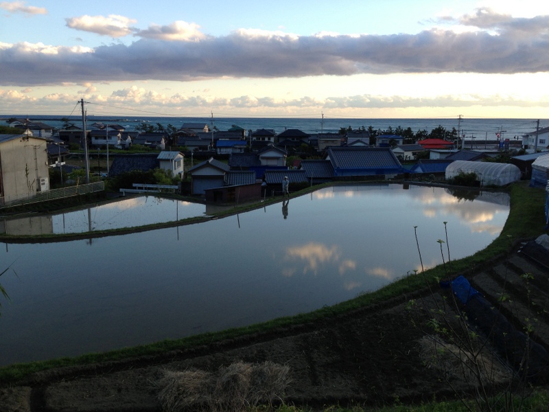 左の隅っこの築50年近くの古い長屋が我が家です。すぐ側に、水田があり、そこから太平洋が一望できちゃいます。さらに、ブルーベリーやミツバチの巣箱などが並ぶ畑を脇を通って、谷筋を登っていきます。