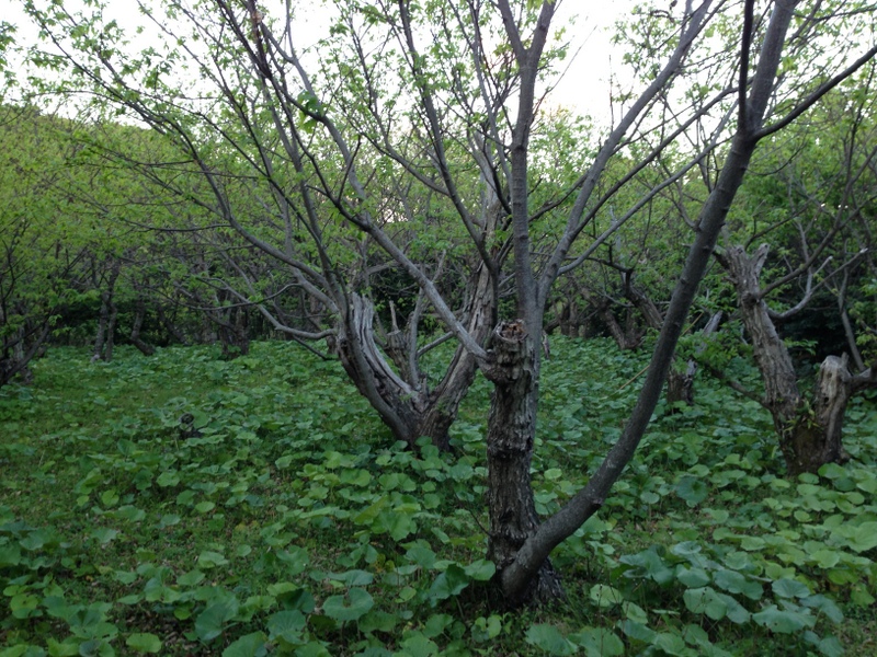 さらに、10分くらい登って標高100mくらいまでくると、台地になっていて、栗林があります。木の下に生えているのは、ツワブキ。室戸ではこのツワブキも食べます。