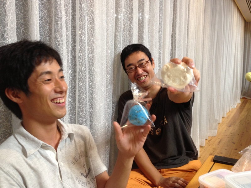 なんだか、楽しそうな青年が二人。嬉しそうに持っているものは、、、、?