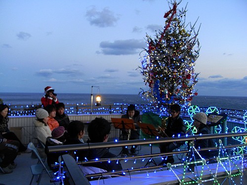 岬の岩と、海と、空と、クリスマスイルミネーション。いい組み合わせでした。ちょっと寒かったですが。