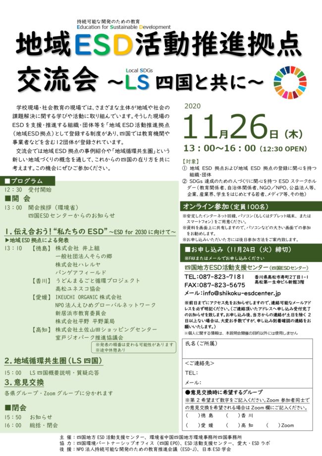 地域ESD活動推進拠点交流会~LS四国と共に~